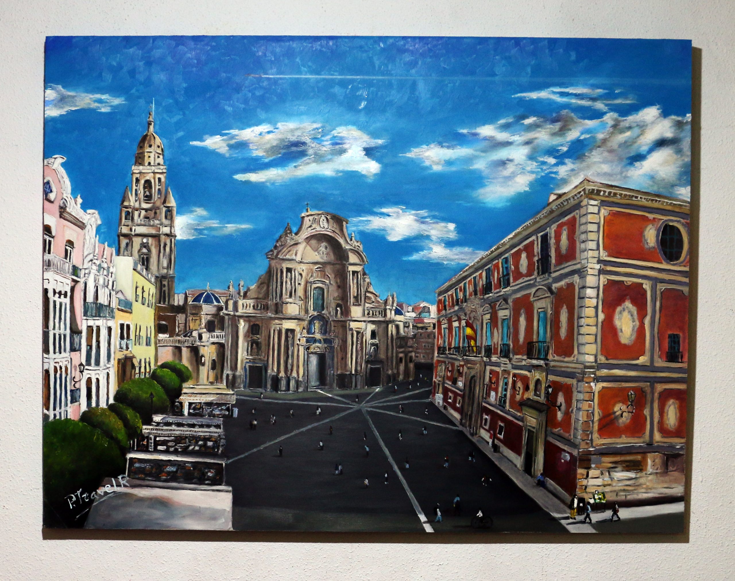Esta obra nace de una serie de imágenes que tomé desde lo alto del edificio Moneo, justo frente a la Catedral de Murcia. Desde esa altura, se obtiene una vista única de la Plaza del Cardenal Belluga, un lugar lleno de historia y de vida que siempre me ha fascinado.