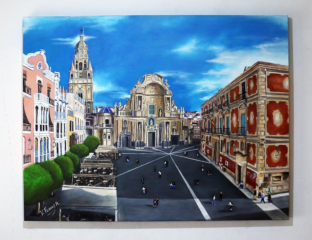 Esta obra nace de una serie de imágenes que tomé desde lo alto del edificio Moneo, justo frente a la Catedral de Murcia. Desde esa altura, se obtiene una vista única de la Plaza del Cardenal Belluga, un lugar lleno de historia y de vida que siempre me ha fascinado.